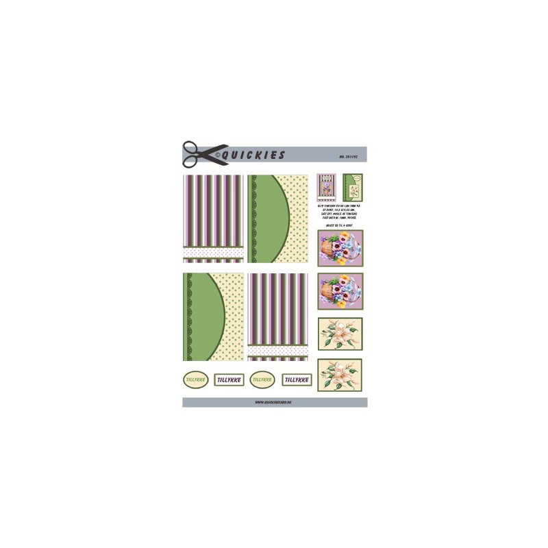 Quickies card er hurtige at lave og du får et flot kort på ingen tid. Der er på arket vist et billede af hvordan du evt. kan vælge at lave dit kort